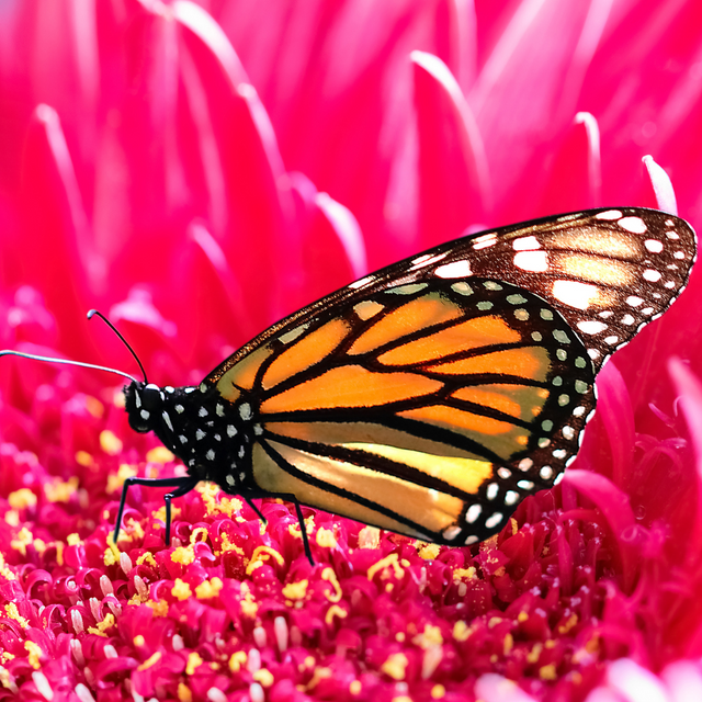 Monarch butterflies make one of the longest pollinizing insect migrations in the world, embarking on an incredible journey across Canada and the USA to their wintering grounds in Mexico. The future generation travels back, laying their eggs on herbaceous plants, the only source of food for baby caterpillars.
