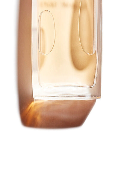 Light plays upon the interplay of frosted and translucent glass, revealing the apricot hue of the perfume.
